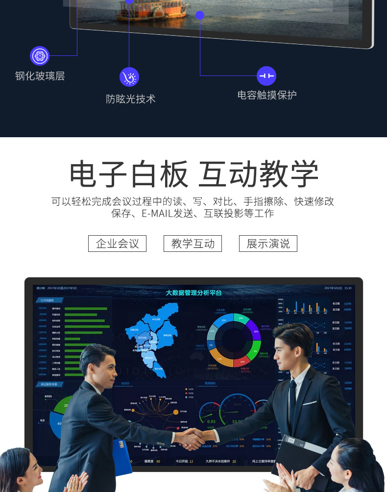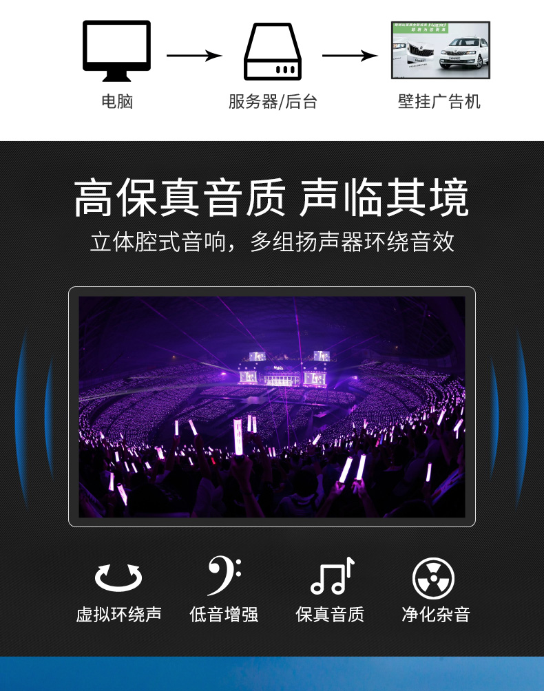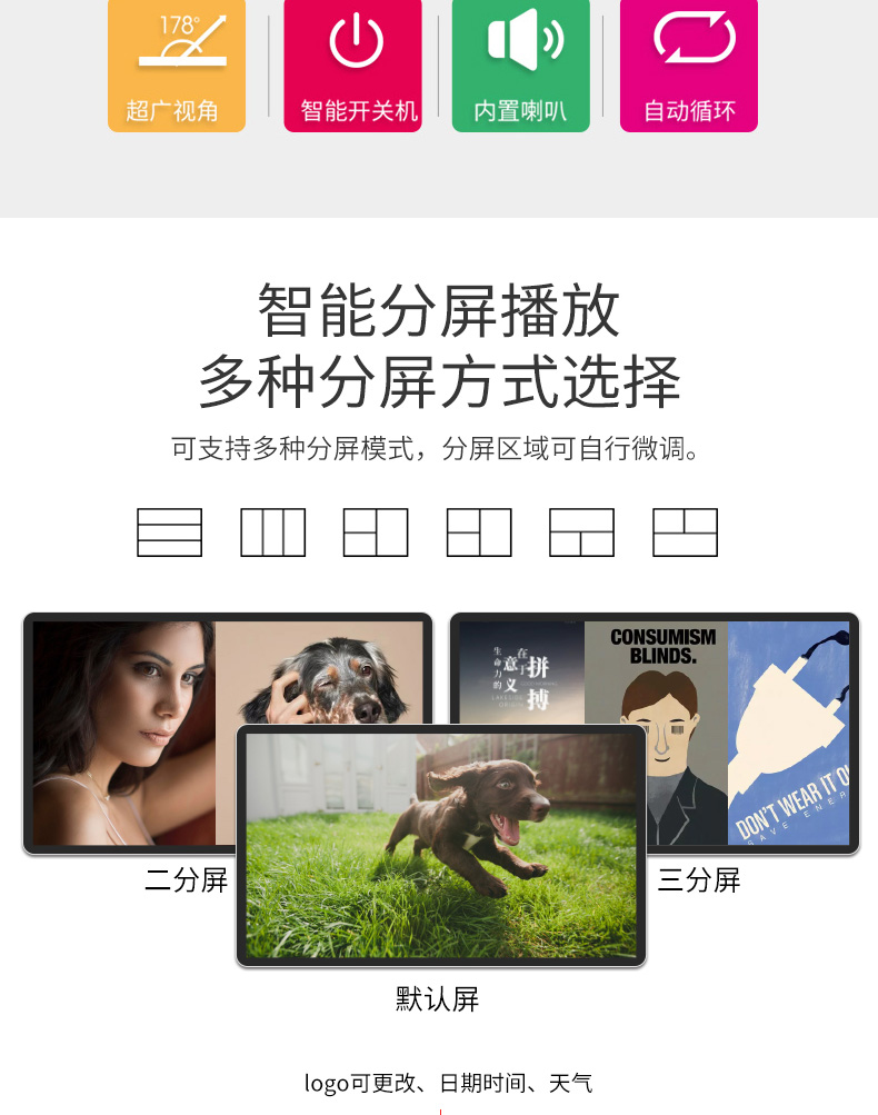 【产品尺寸】32/43/50/55/65/75/85/100英寸(更多尺寸支持定制)