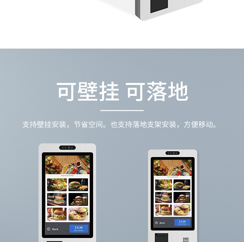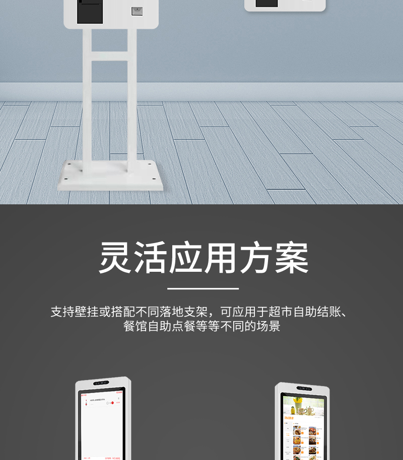 机身轻薄、安装灵活,可根据场景需求固定于墙面或落地,搭配防刮耐磨外壳与稳定硬件,可稳定运行,满足多场景多样化自助需求,兼顾实用性与空间适配性,7*24H 工作,支持定制。