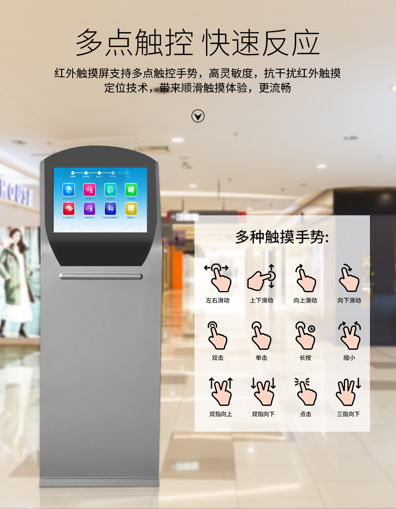 高清显示屏,触摸查询,人机交互,快速打印,支持定制。丰富的扩展槽与接口便于按需定制、灵活升级,支持 7 *24H 工作。