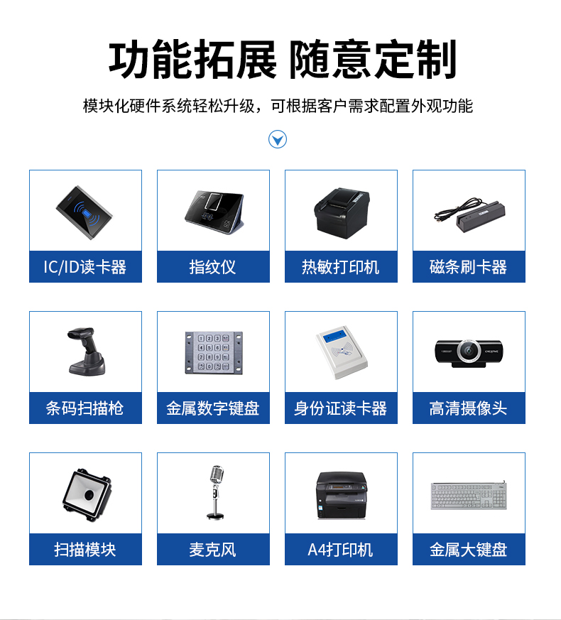 高清显示屏,触摸查询,人机交互,快速打印,支持定制。丰富的扩展槽与接口便于按需定制、灵活升级,支持 7 *24H 工作。