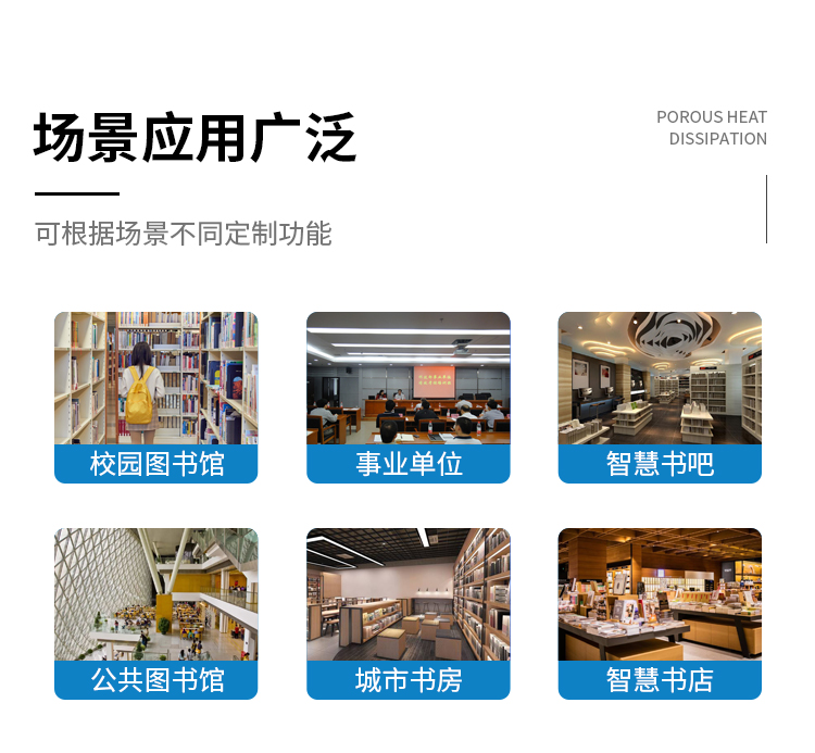 全天候运行、小票打印、多本图书同时借还、千兆网口、低噪音设计、支持定制。
